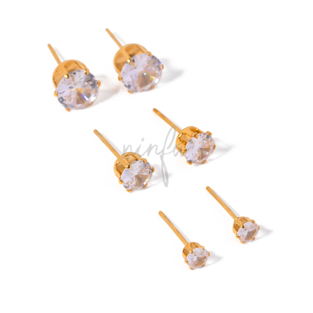 T'oferim un pack amb 3 parells d'arracades de material Acer de color Gold PVD de diferents mesures (4, 6 i 8mm). Rebràs en total 6 pendents de zircònia enfilada perquè les combinis si tens diverses perforacions en la teva orella. Combina delicadesa i resistència, perfectes per al dia a dia.