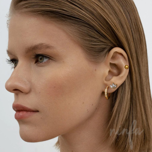 Te ofrecemos un pack con 3 pares de pendientes de material Acero de color Gold PVD, compuesto por un par de aritos con brillantes, un par de bolitas doradas de 3.8mm de grosor y un par de pendientes con 3 circonitas pequeñas con forma de hoja. Recibirás en total 6 pendientes para que las combines si tienes varias perforaciones en tu orejita.